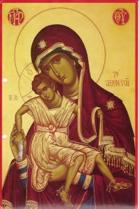 Sewaktu menyanyikan kidung ini, Ikon tersebut tersinari dengan cahaya surgawi, dan si murid menangis haru ia meminta sang tamunya menuliskan bait baru itu, tetapi waktu itu tidak tersedia kertas. Si tamu asing mengambil sebuah genteng dan menuliskan seluruh kidung itu dengan jarinya, seolah saja terbuat dari lilin. Si murid kemudian tersadar bahwa yang ia jumpai bukanlah rahib biasa, tapi Malaikat Gabriel. Sang pengunjung itu mengatakan padanya, “Lagukanlah kidung ini demikian, serta semua umat Orthodox.” Kemudian ia menghilang. Cahaya itu masih bersinar dari Ikon untuk waktu yang lama.